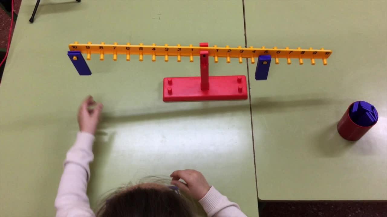 Ha llegado al cole la balanza aritmética. Voy a hacer con ella una suma y una multiplicación.
