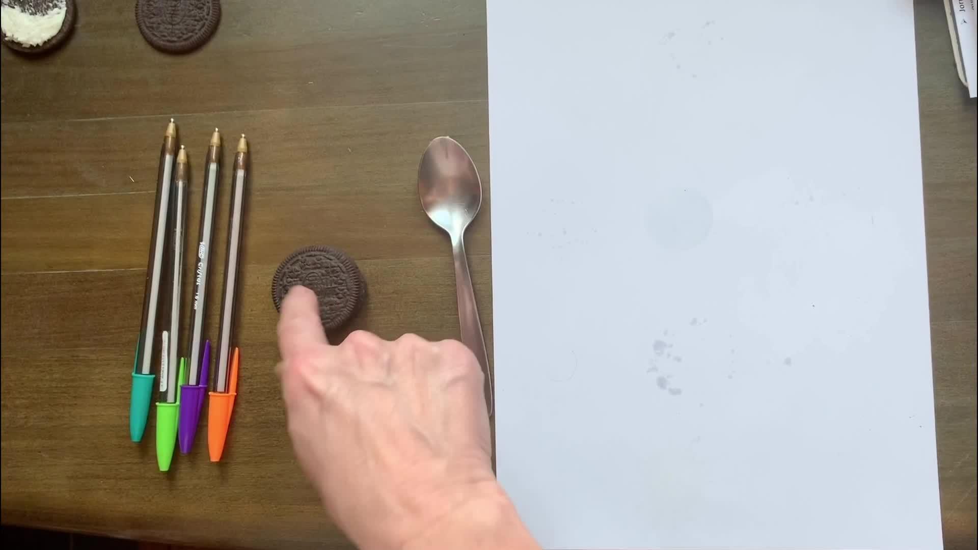 Para ello vamos a necesitar un folio, una cucharilla, unas galletas que tengan algo de relleno