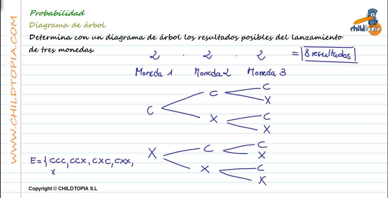 Determina con un diagrama de árbol los resultados posibles del lanzamiento de tres monedas.