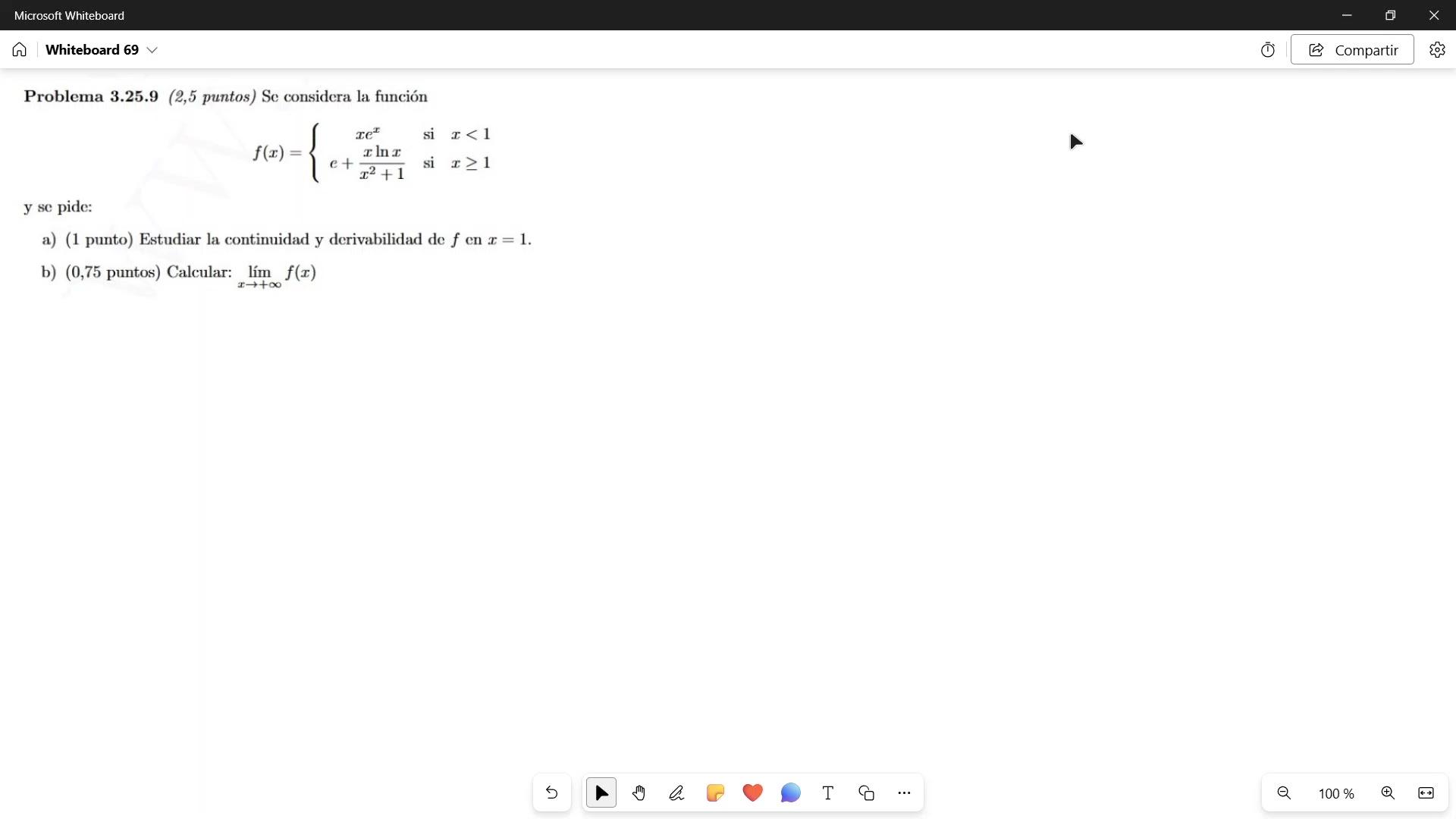 Vamos a ver este ejercicio en el que me da una función definida a trozos.