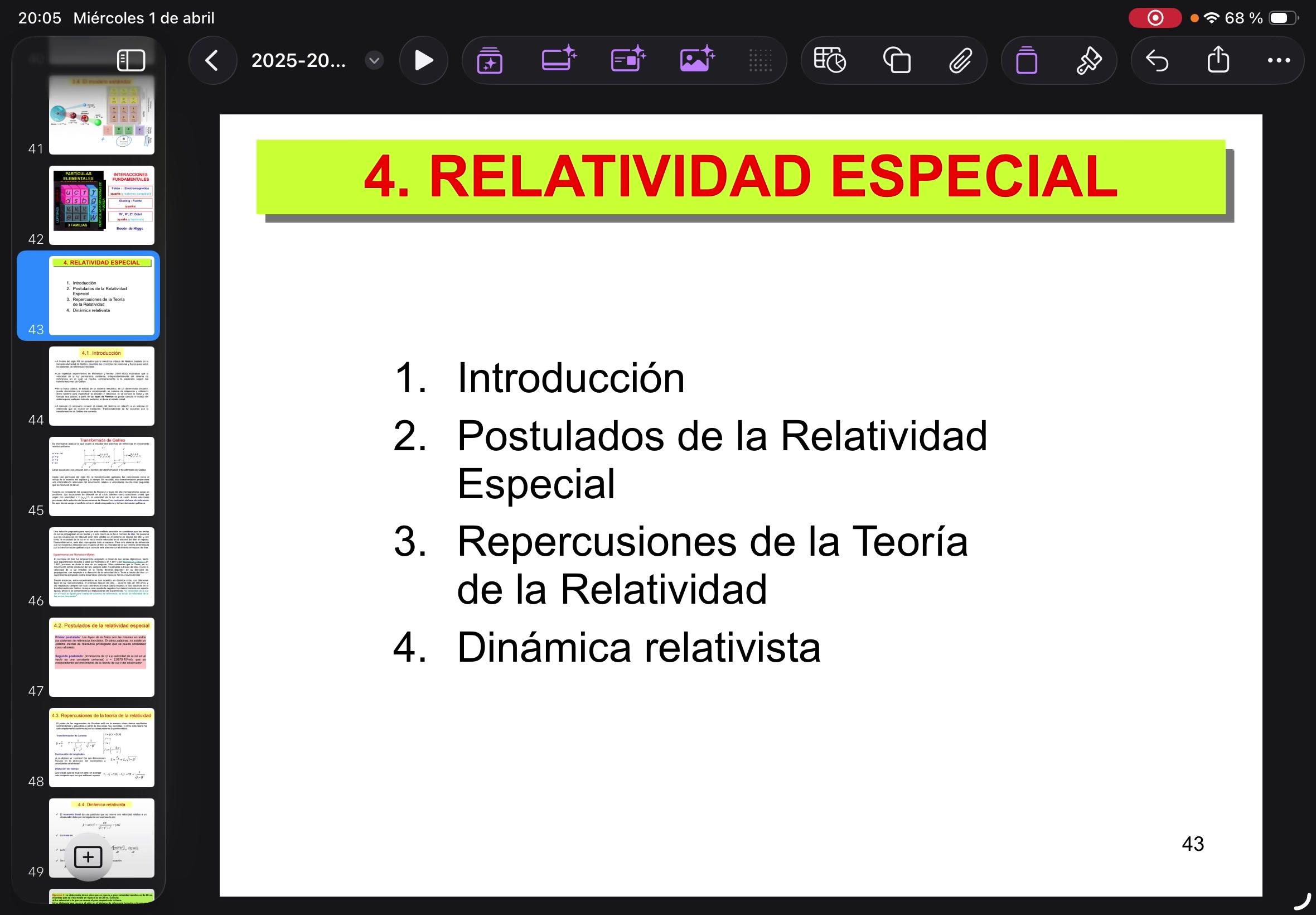 Empezamos con relatividad especial. Vamos a ver un poquito la introducción, los postulados de la relatividad especial, porque luego hay la relatividad general y las repercusiones de todo esto.