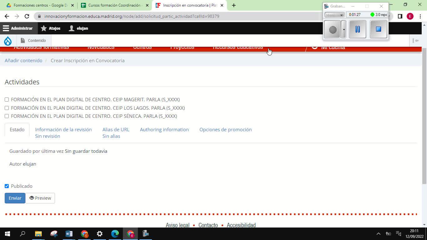 Inscripción en actividad convocatoria - Contenido educativo