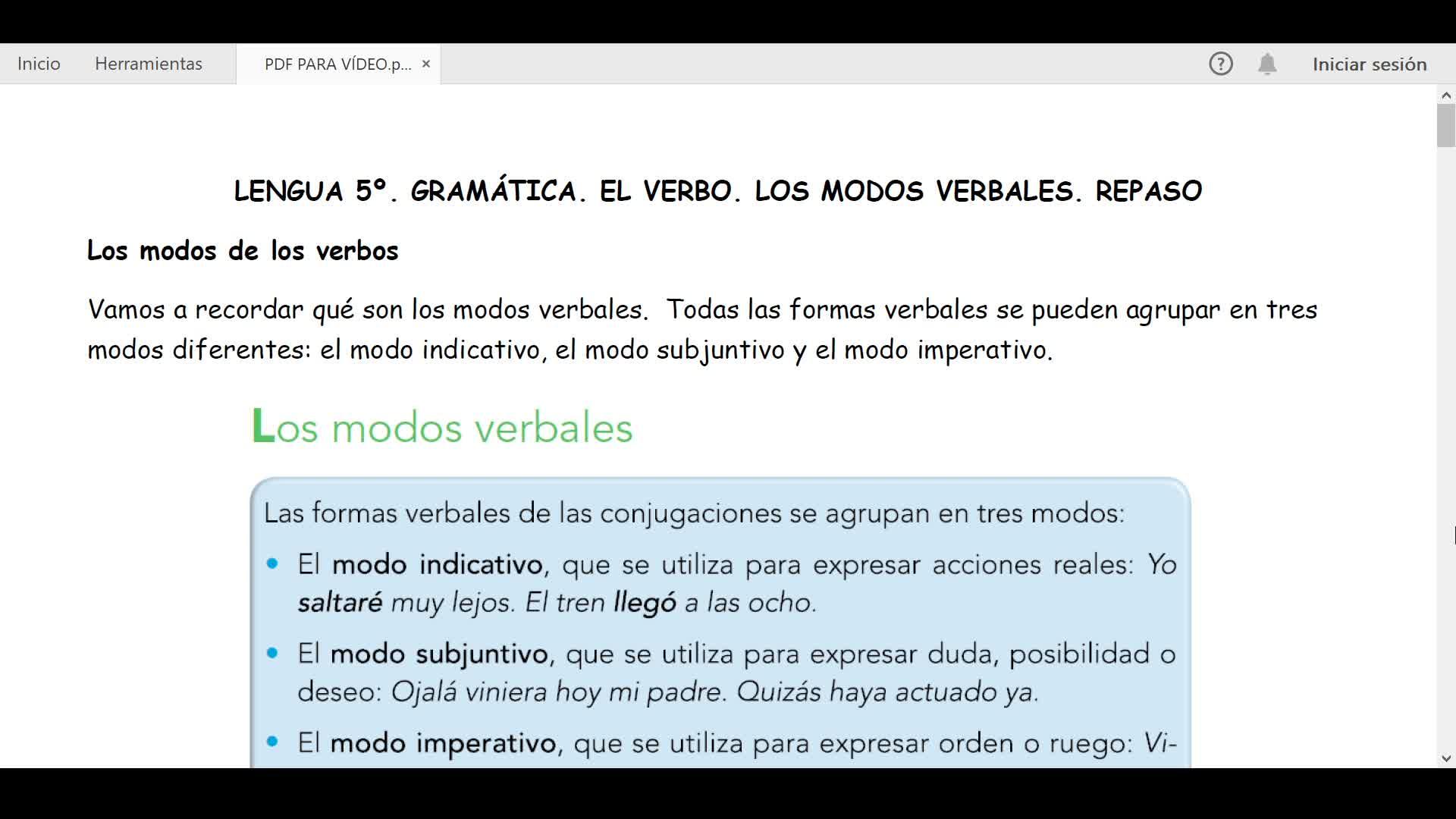 LENGUA 5º. EL VERBO. LOS MODOS VERBALES