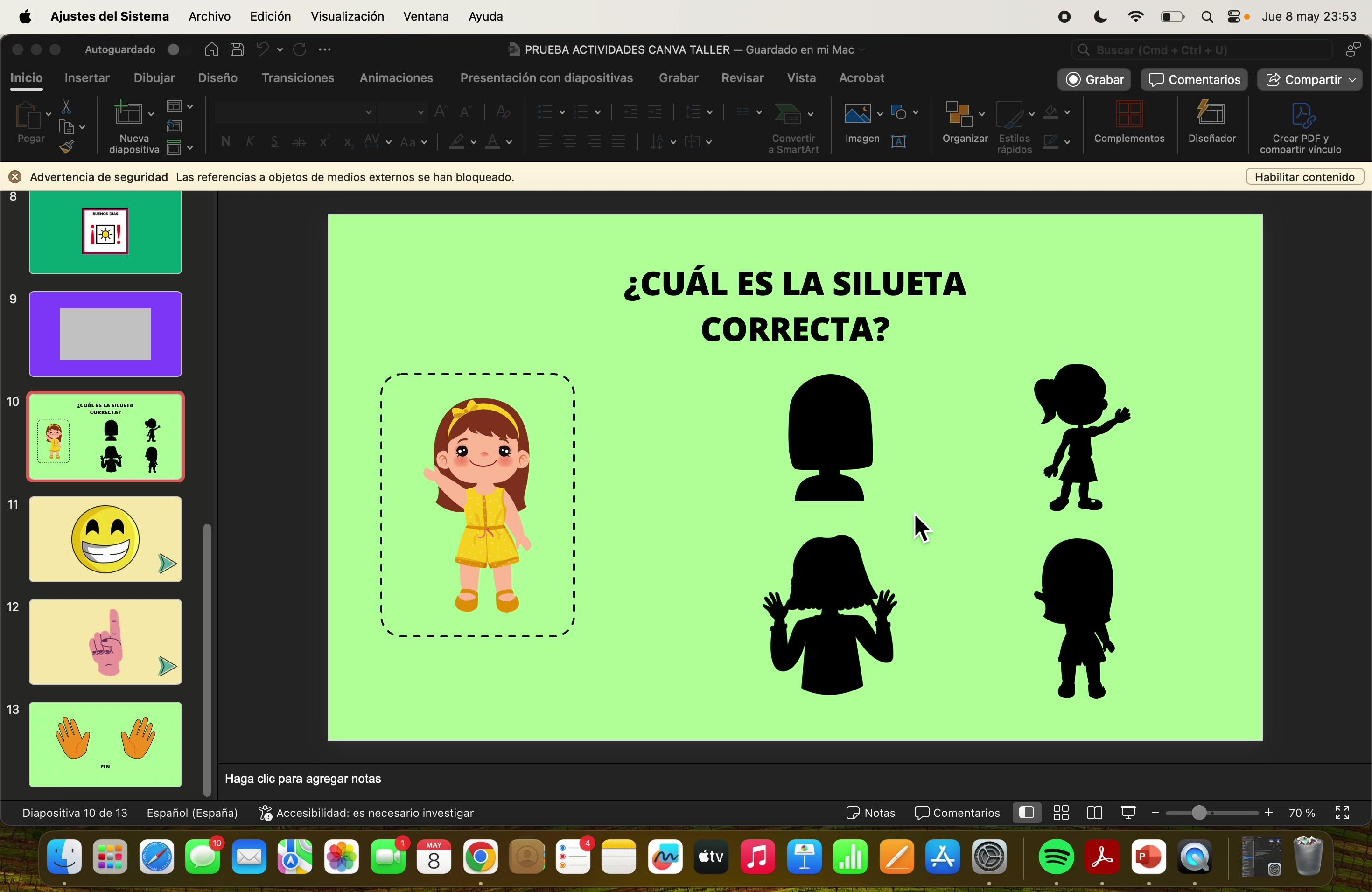 Actividad Canva con control por botón (barrido) en Mac - Contenido educativo