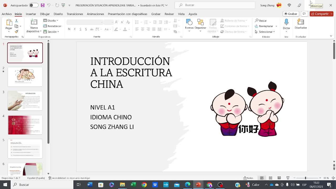 Ahora muestro la presentación. La situación es, todo el mundo cree que el chino, los caracteres, son muy difíciles o imposibles de escribir.