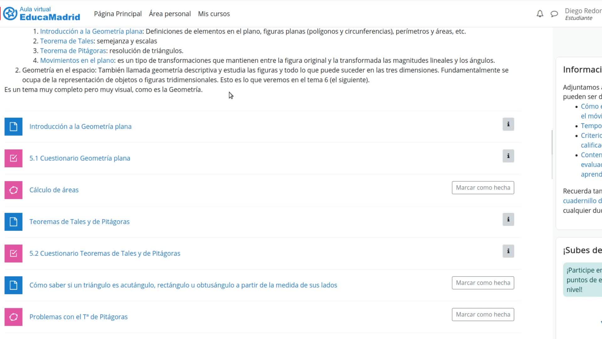Pero hoy nos centramos con este primer bloque, la introducción a la geometría plana. Y este enlace, la introducción a la geometría plana, es el que vamos a ver ahora en pantalla