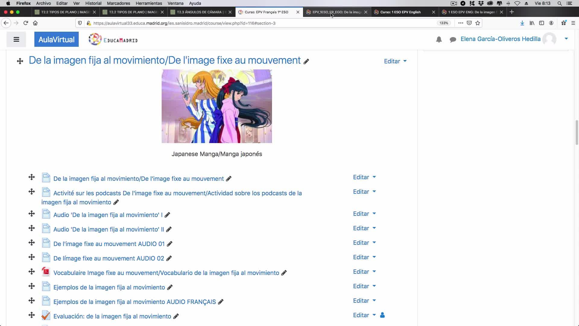 Los tenemos en la parte del aula virtual de la imagen fija al movimiento,