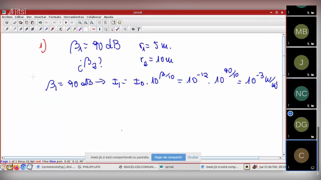 Bueno, pues con beta su 1, que es 90 decibelios, voy a calcularla y correspondiente.