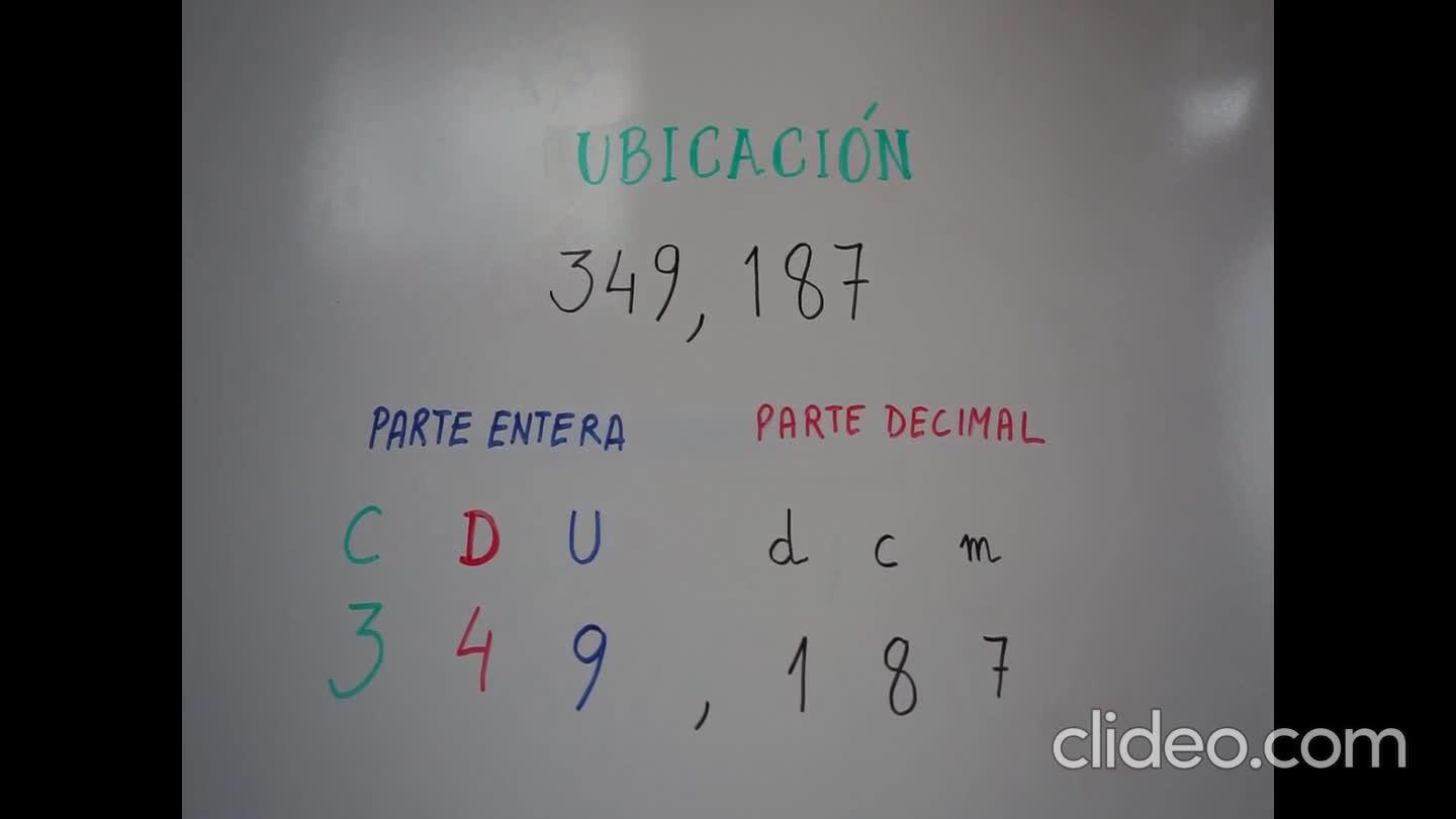 Si tomamos como ejemplo el 349,187, podemos observar que en la parte entera tenemos 3 centenas, 4 decenas y 9 unidades