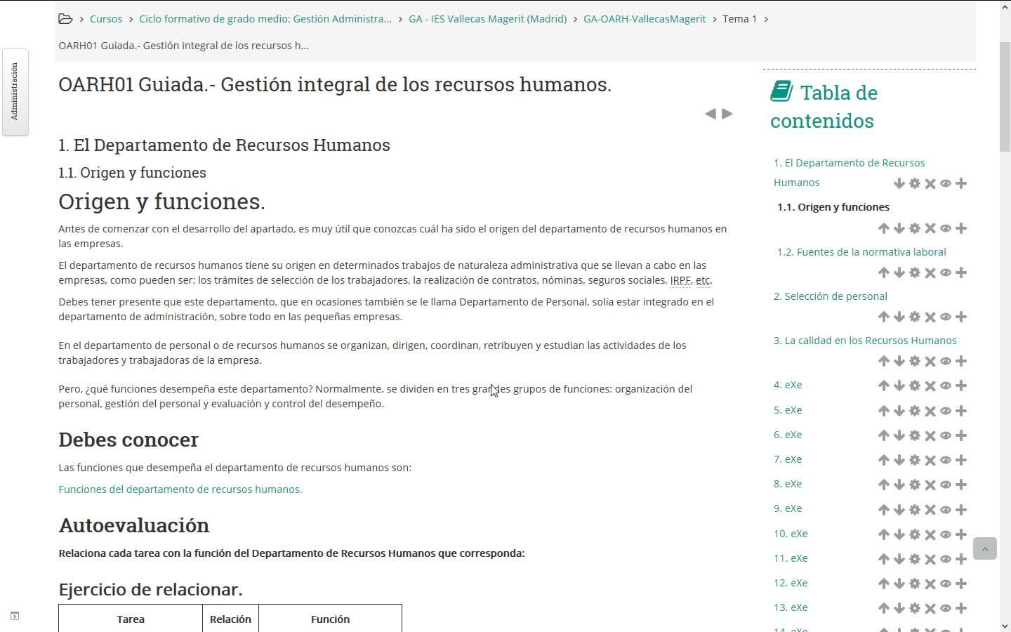 presentación de los contenidos. Aquí, bueno, nos habíamos quedado en el índice, aquí he hecho