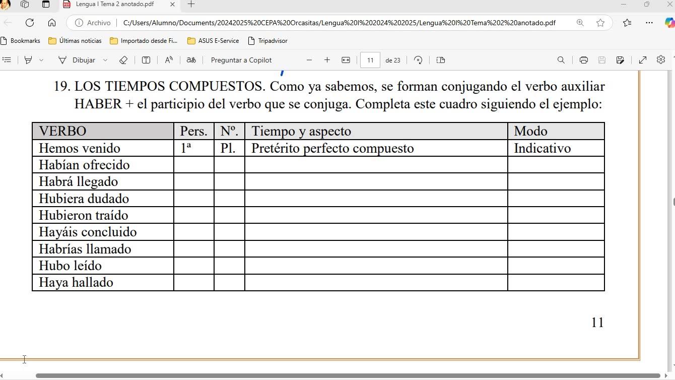 Nos habíamos quedado en el ejercicio 19, que dice así, los tiempos compuestos.