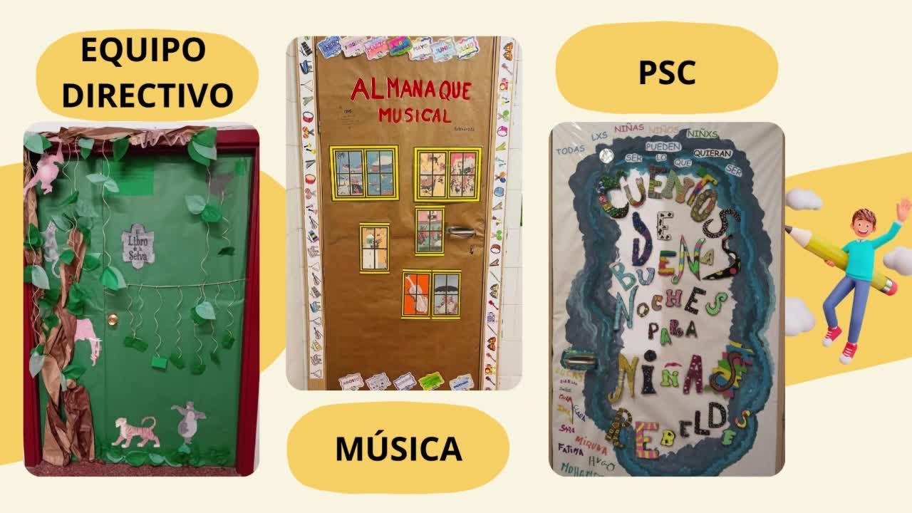 Así han quedado las puertas de las aulas decoradas con diferentes títulos de cuentos.