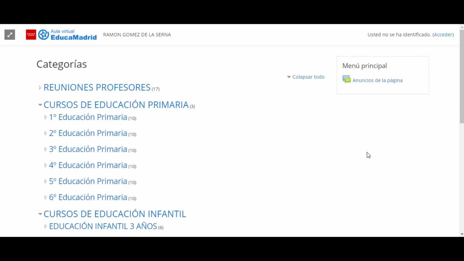 Vale, pues como veis estamos en el aula virtual del colegio, nos vamos aquí arriba a la derecha que dice acceder, pinchamos, meteríamos nuestro usuario y contraseña, pinchamos en acceder y ya estamos dentro del aula virtual registrados.