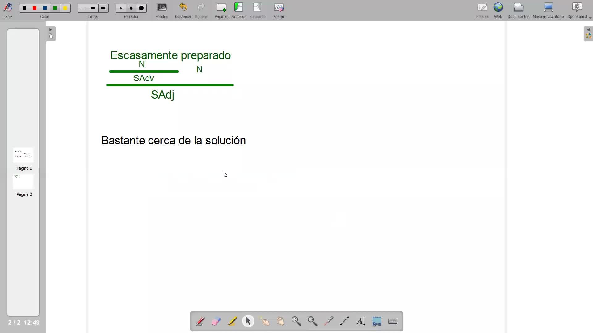 Porque tiene siempre el término de un sintagma preposicional, es un sintagma en este caso, es un sintagma nominal, tiene su determinante, no me puedo dejar nada sin analizar, y solución que es el núcleo.