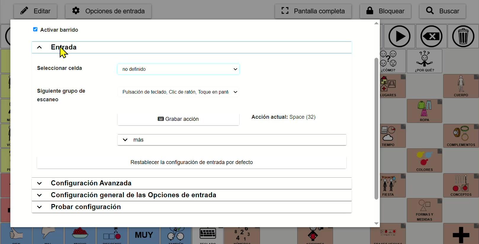 Seleccionar celda en AsTeRICS Grid - Contenido educativo