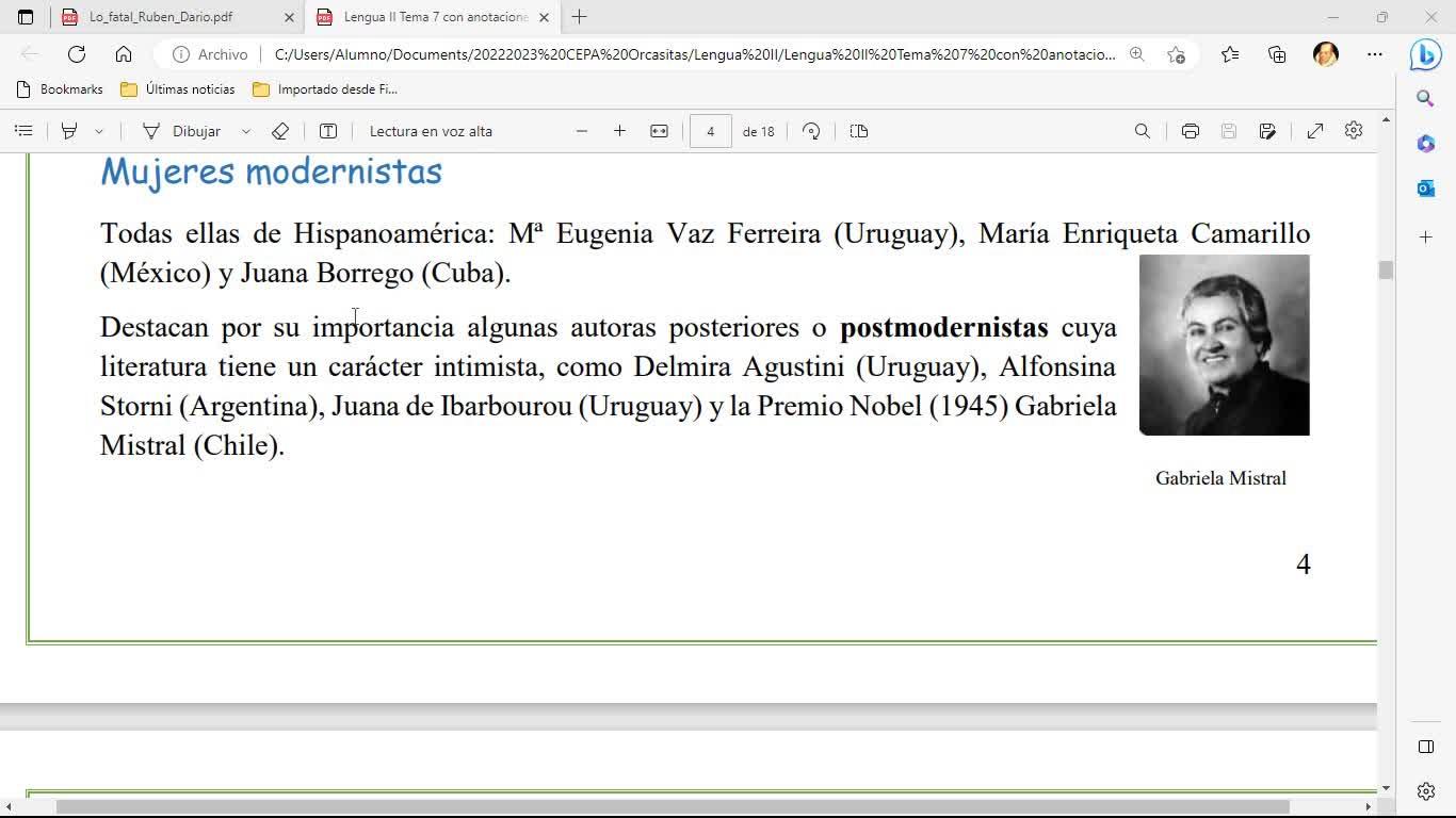 la premio Nobel Gabriela Mistral, entre otras. Hoy tocaba hablar del modernismo de España. Voy