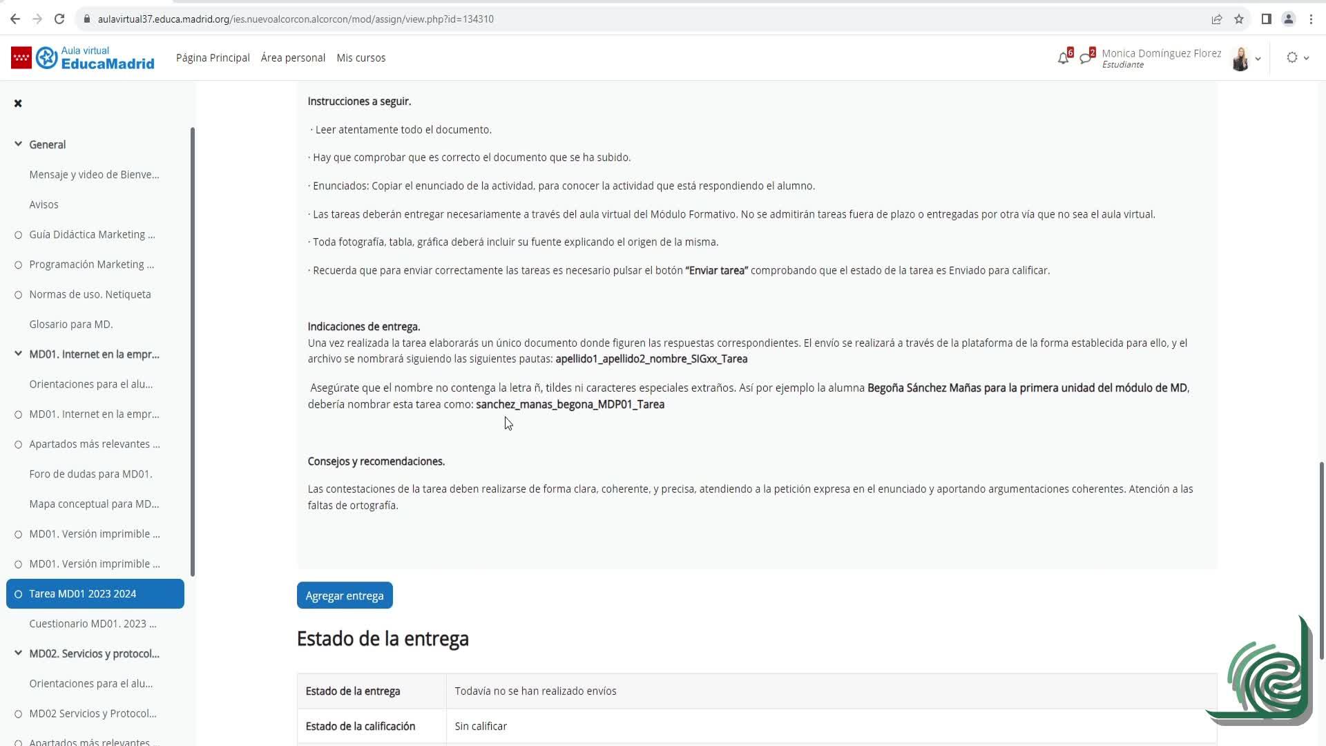 bajamos, nos pone aquí borrador no enviado. Le damos aquí a enviar tarea. Y nos dice,