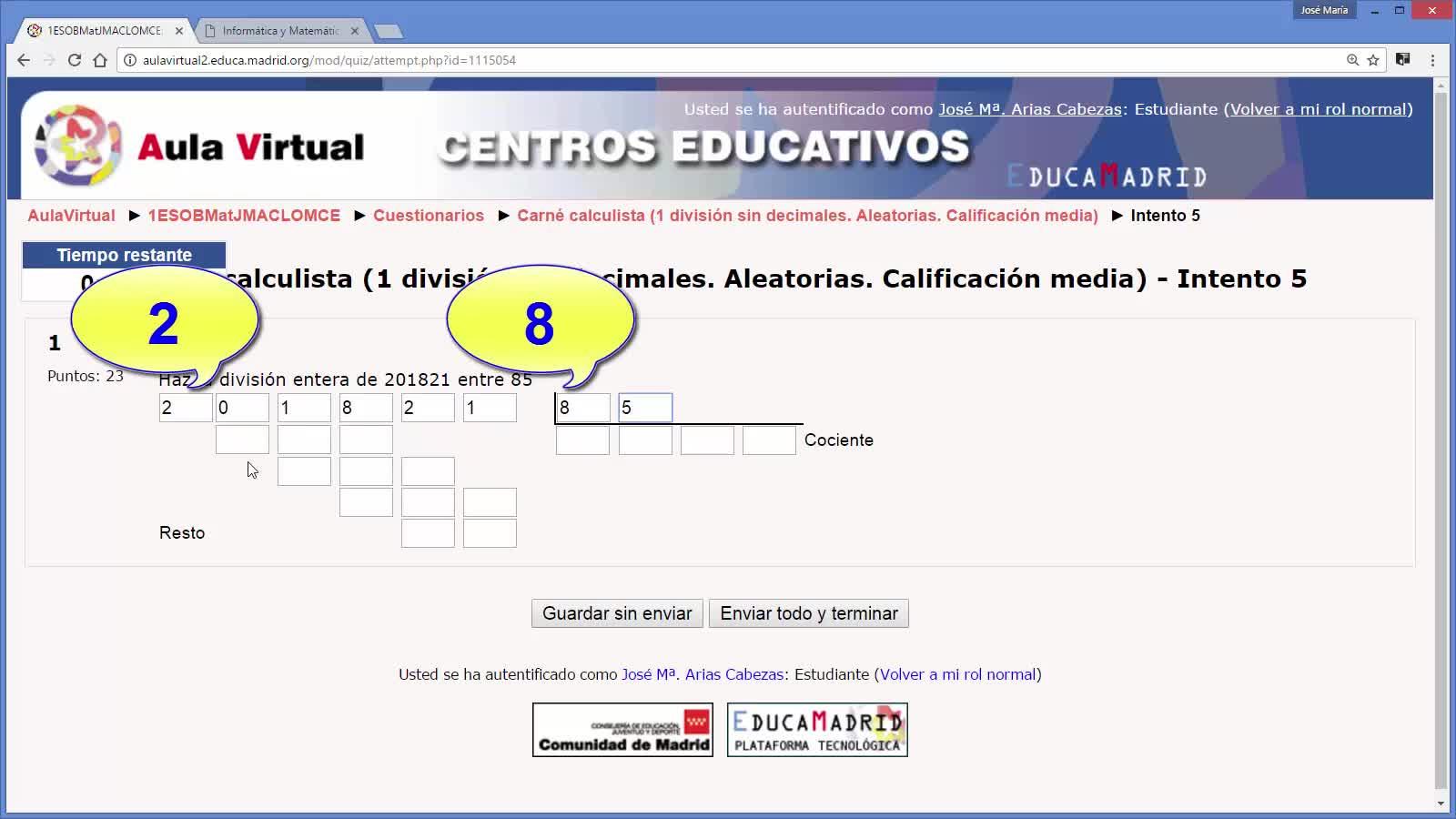 Carné calculista: División entera o sin decimales 2 de Arias Cabezas con Moodle - Contenido educativo