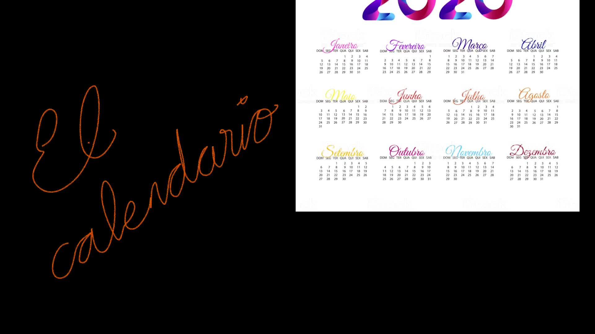 El calendario. Lo primero que nos encontramos es el año, en este caso 2020.