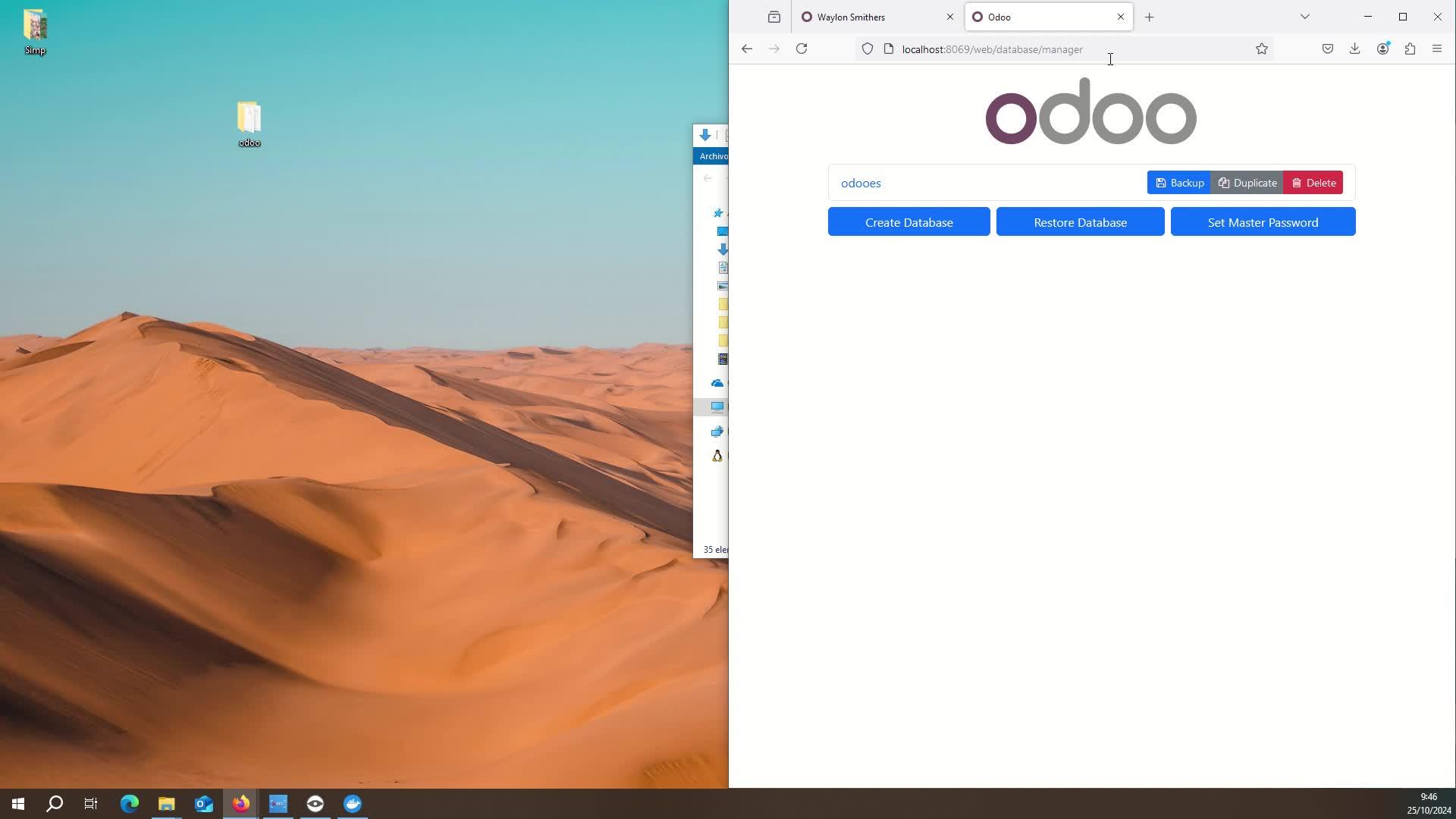 Muy bien, pues vamos a hacer un backup de ODOH, nos vamos a la, abrimos aquí, en web database manager y aquí vemos que está nuestra base de datos, hacemos el backup, guardamos el archivo zip,