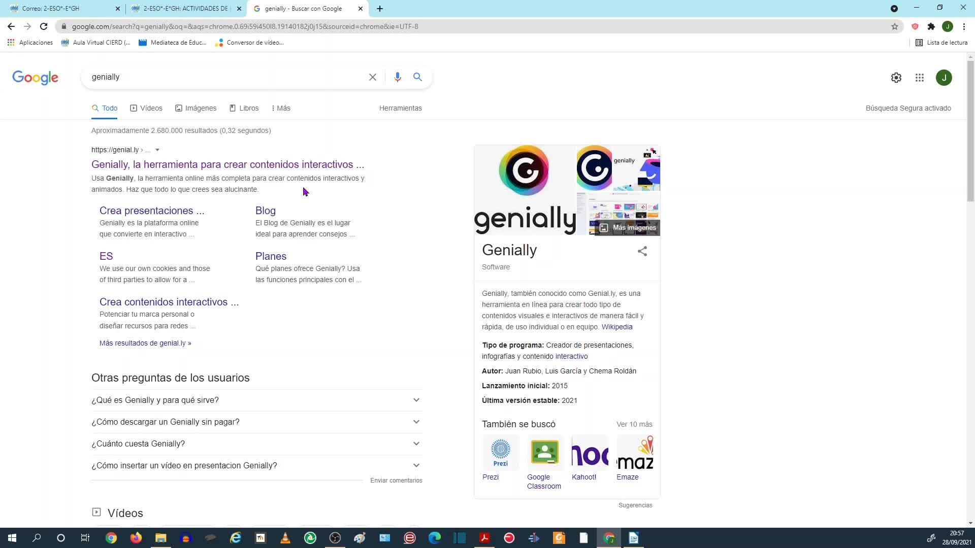 Para ello, bien, vamos a buscar en Google Genially para poder ir trabajando según lo vamos viendo