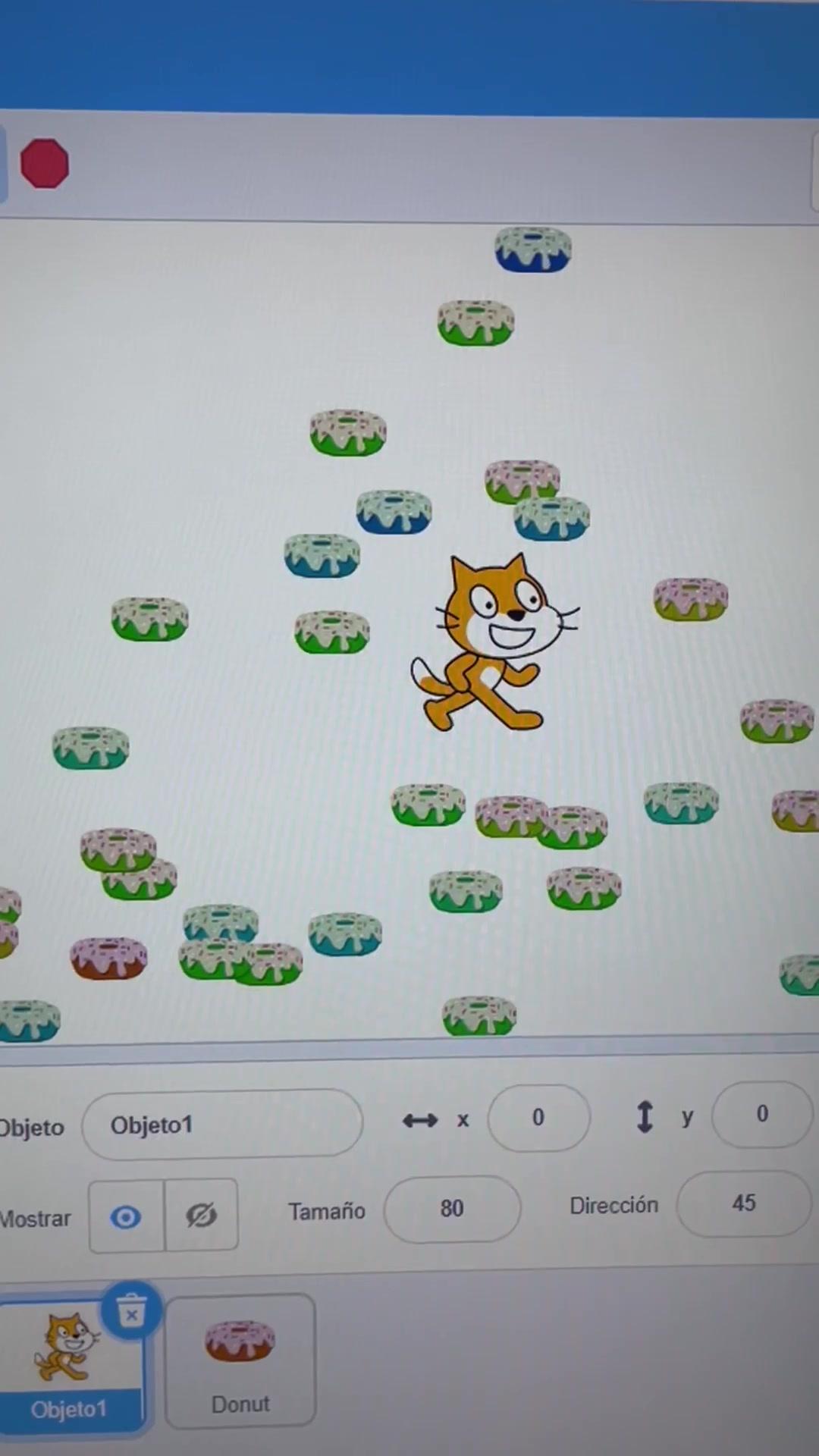 Empieza a programar con Scratch con pequeños juegos como el gato que se come donuts. Usa los clones, bloques de repetición y de movimiento. Añade sonidos.
