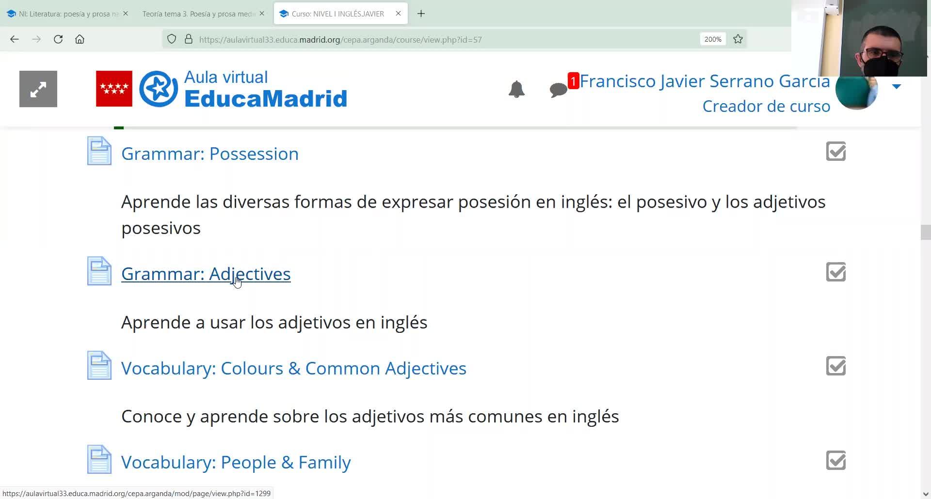 Adjectives G NI - Contenido educativo