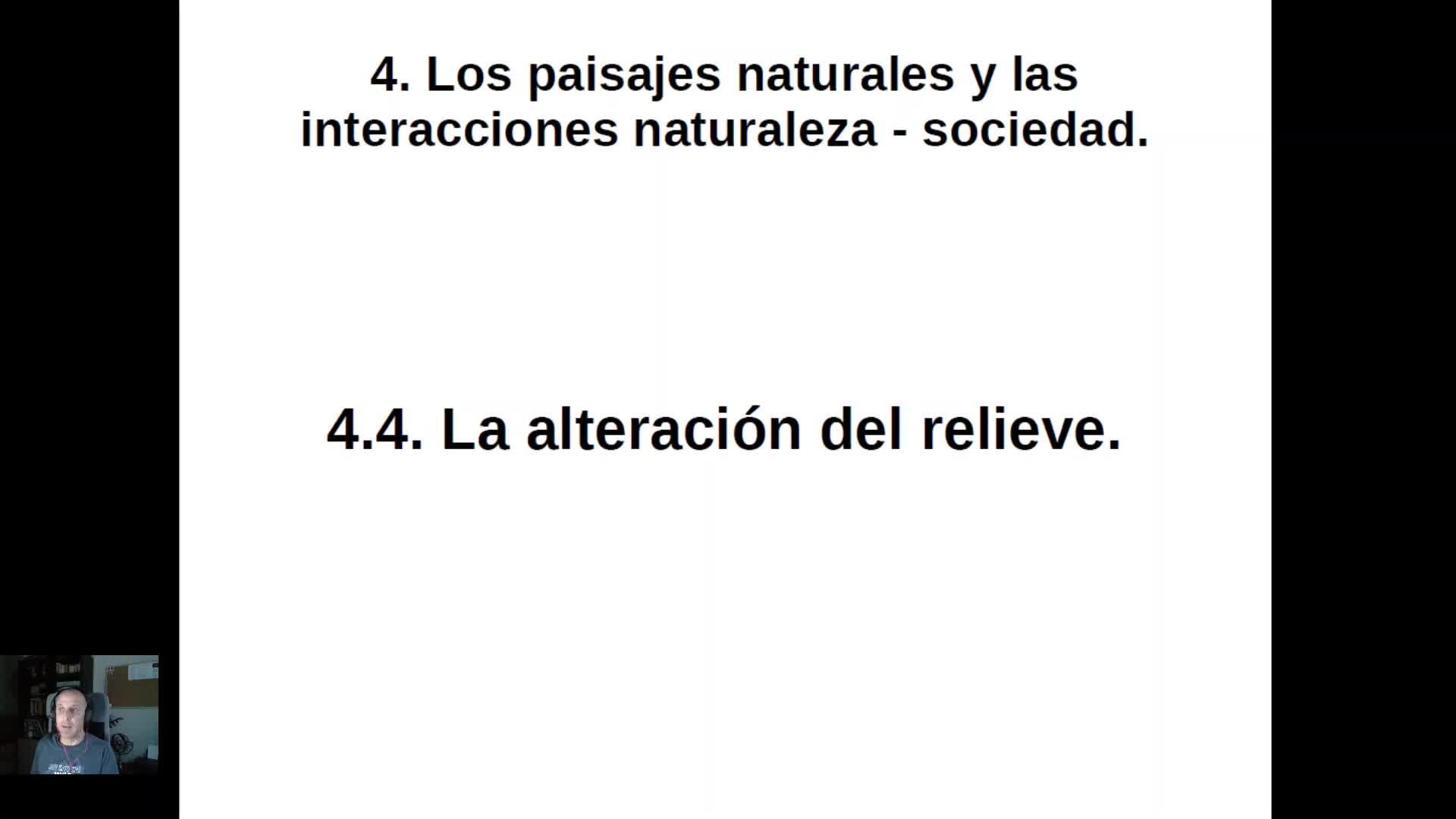 Continuamos con el tema 4, los paisajes naturales y las interacciones entre naturaleza y sociedad en España, y nos vamos a detener específicamente en la alteración del relieve.
