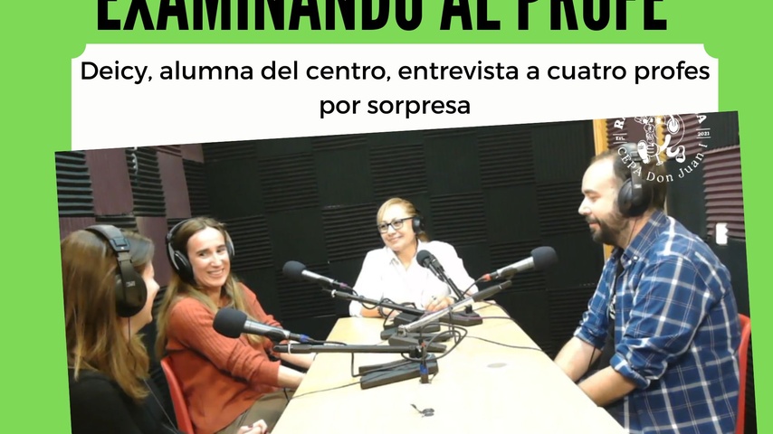Deicy, alumna del centro, entrevista por sorpresa a Raquel, Marta, Víctor y Javier, cuatro profesores, y les pregunta acerca de su trabajo y experiencia.