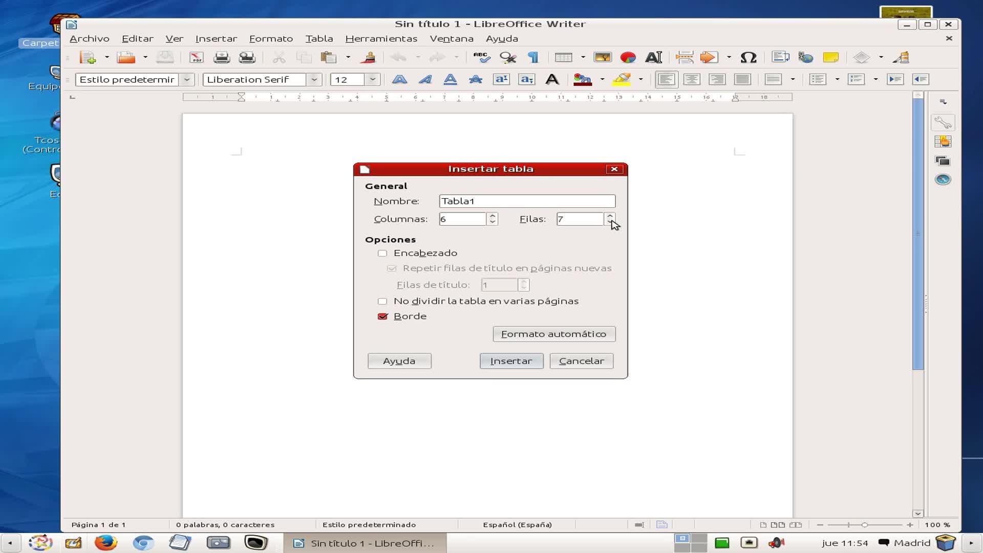 Como hacer una tabla en Writer