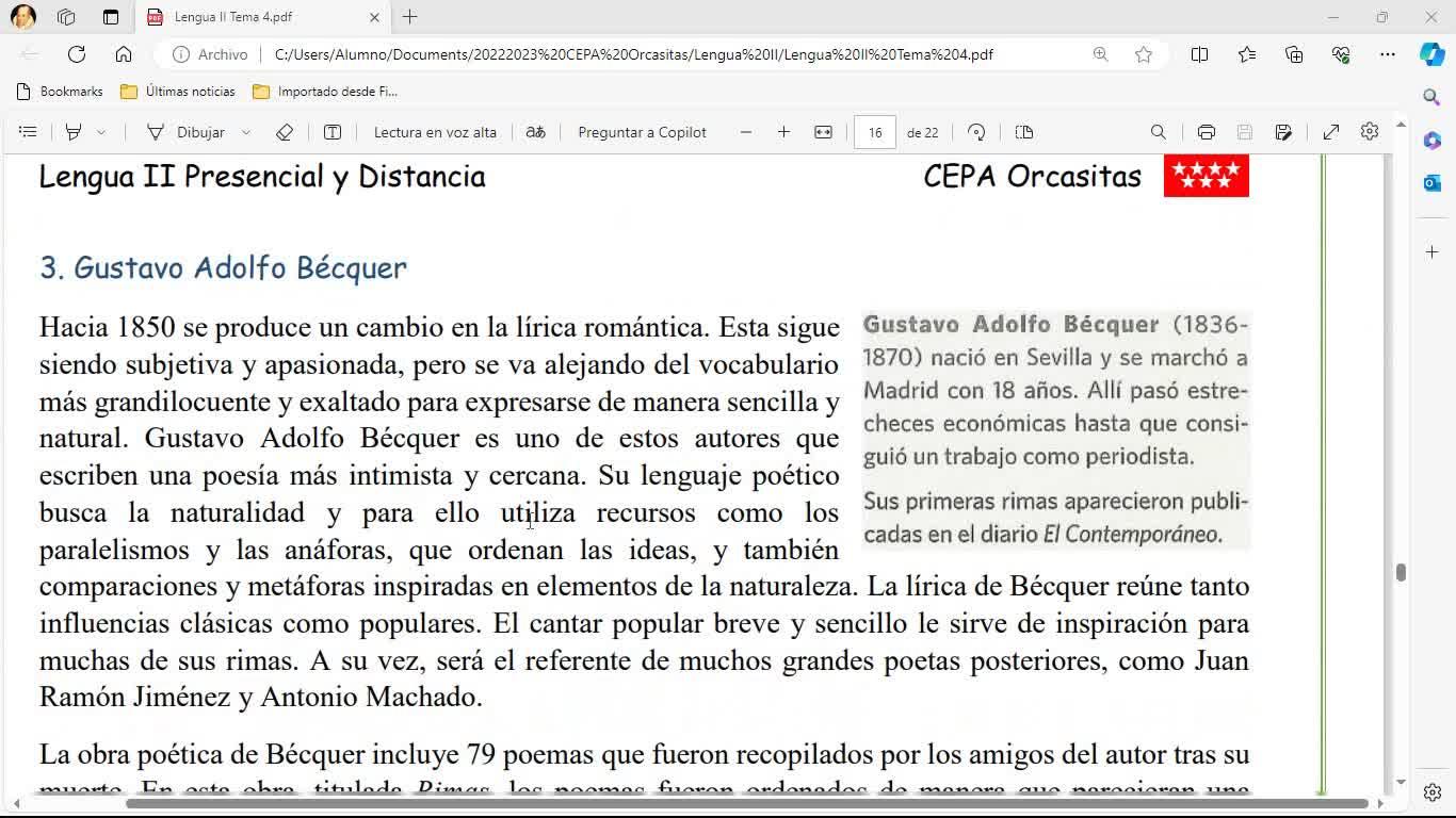 Lengua II Distancia Clase 41 20240221 - Bécquer: Rima LII Olas gigantes - Contenido educativo