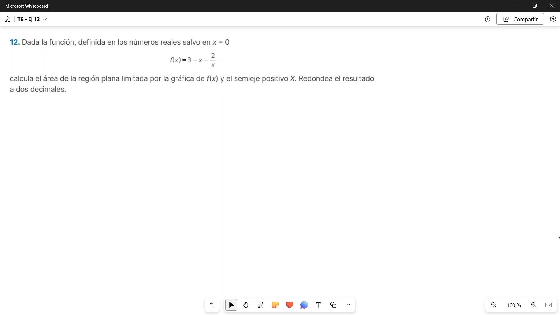 Y me piden que calculemos el área de la región plana limitada por esa gráfica,