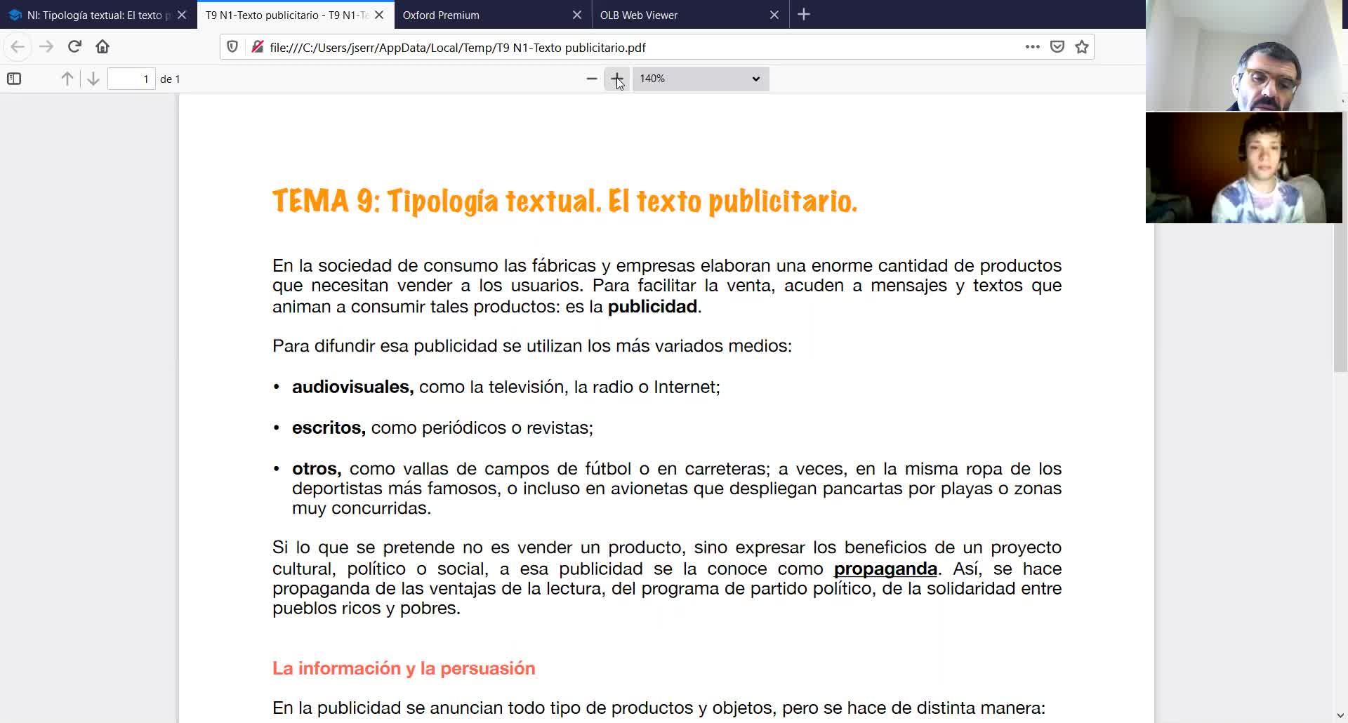 Bueno, que ya es el último texto del curso y es el texto sobre la publicidad, ¿no? Que, bueno, como si hiciéramos un repaso por los diferentes tipos de texto que hemos estado viendo a lo largo del curso, siempre se ha intentado, y un poco así está programado, que sean lo más útiles posible.