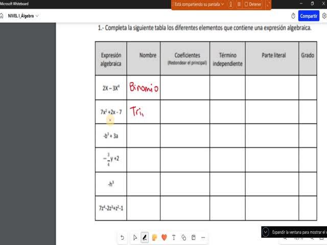 Bien, recordamos que una expresión algebraica son números y letras