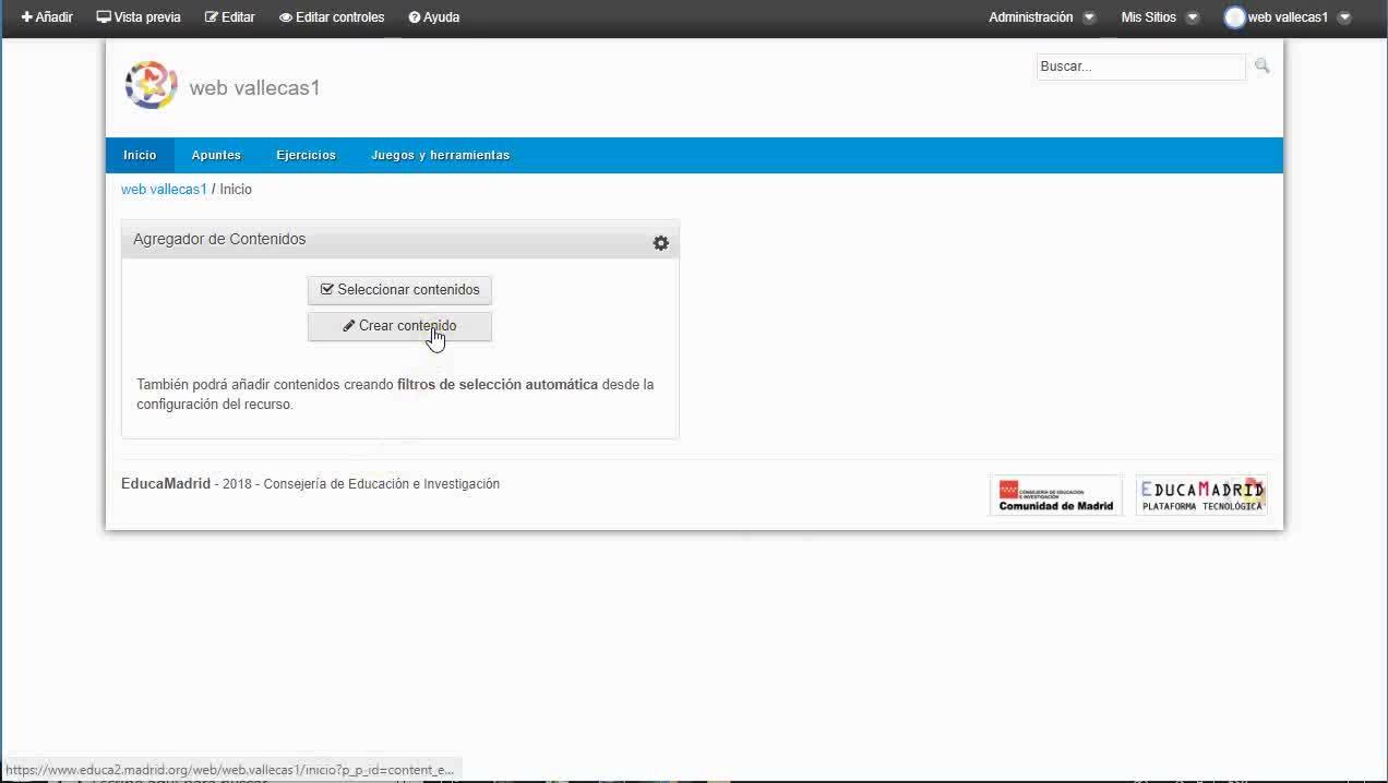 Bien, si le doy a publicar, lo que veo es el agregador de contenidos que antes estaba vacío, ahora ya muestra el texto que le acabo yo de añadir.