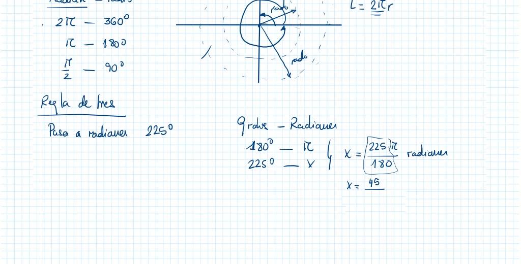 Paso de radianes a grados y de grados a radianes. Problema de las tangentes. - Contenido educativo