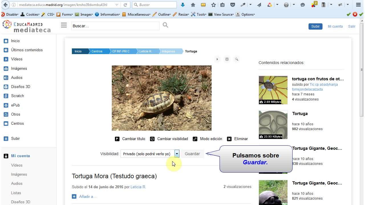 Vídeotutorial donde se explica cómo gestionar los recursos subidos a la Mediateca (cambiar título, visibilidad, autor,...)