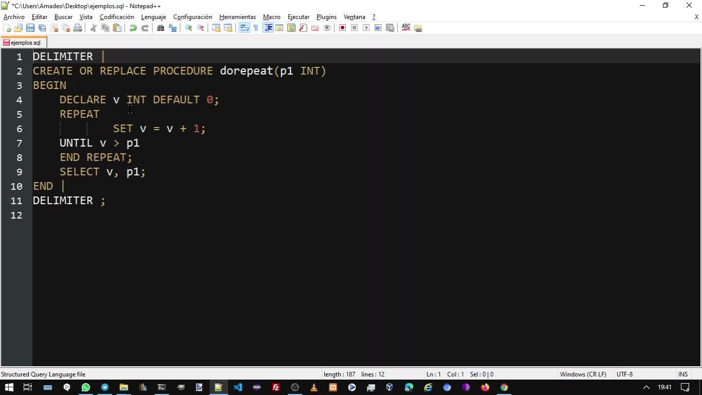 MariaDB, MySQL - Programación - REPEAT - Contenido educativo