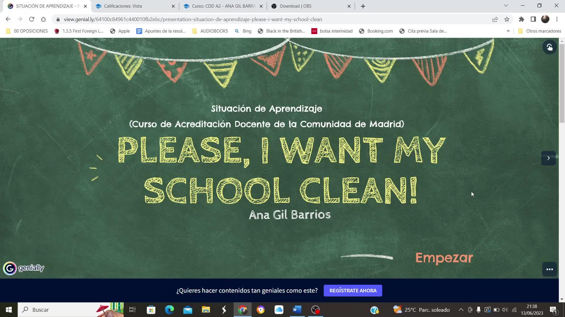 docente de la Comunidad de Madrid, el cual se ha titulado Please, I want my school clean.
