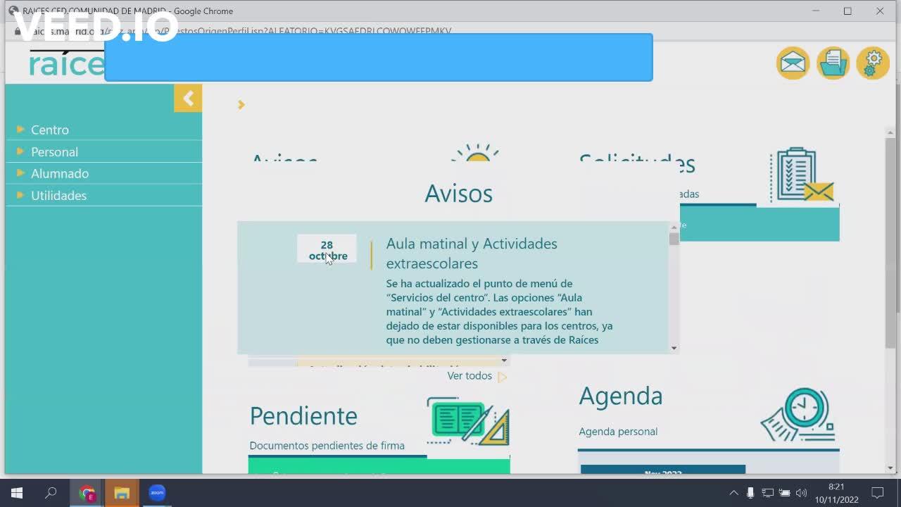 a la izquierda en personal del centro. Luego, arriba a la derecha tenemos unos dibujitos,