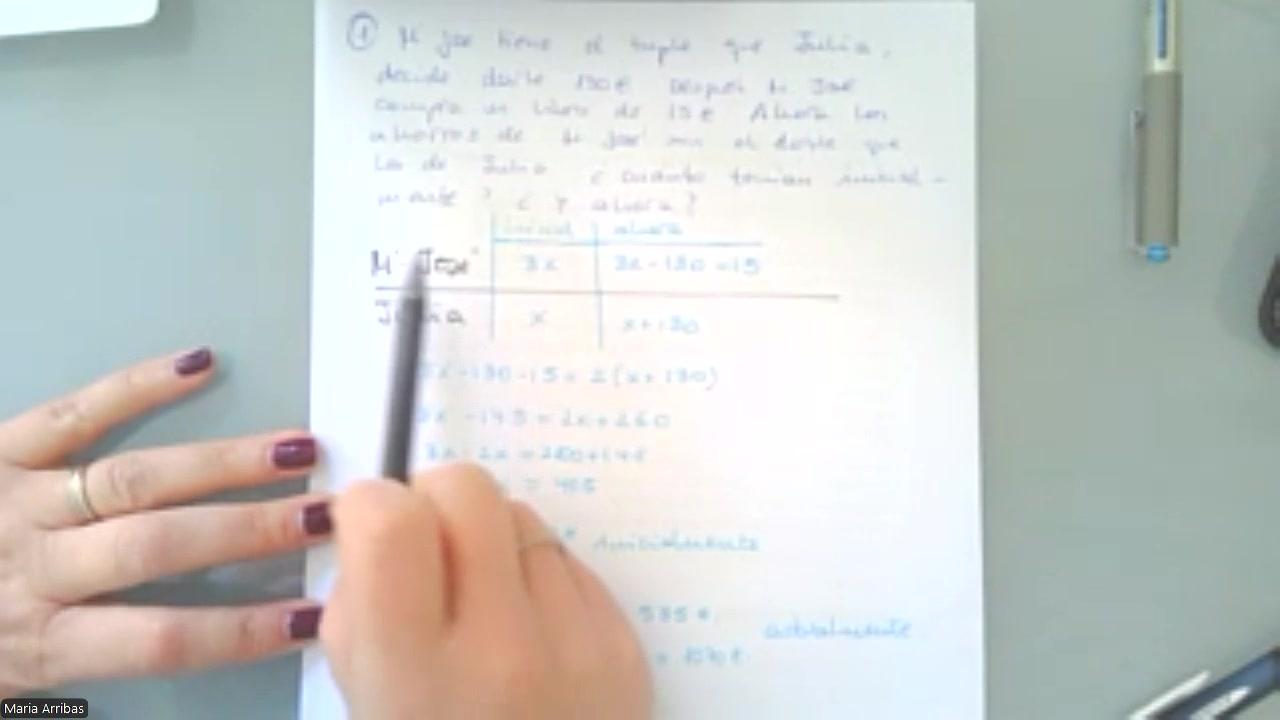 Ahora, ¿qué pasa? Que Julia, o sea, María José le da 130 euros a Julia.