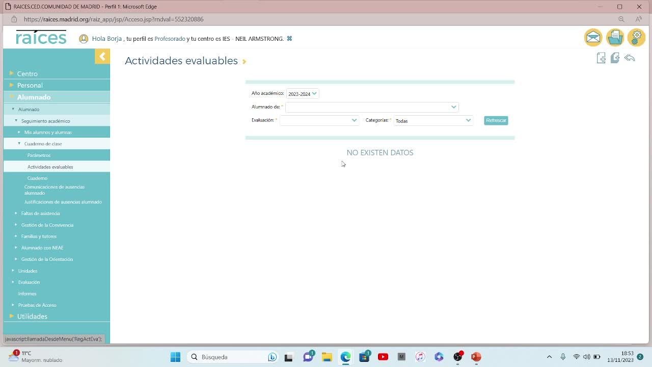 Vemos que lo hemos hecho para el grupo de primero de bachillerato, que es el que menos nos afecta, porque no quería tocar los otros grupos que tengo creados.