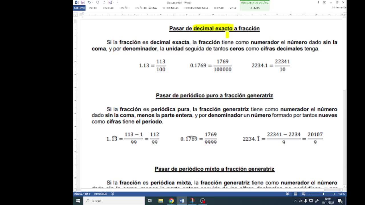 Y un tercer caso que nos encontramos es la fracción generatriz de un número que es periódico mixto.