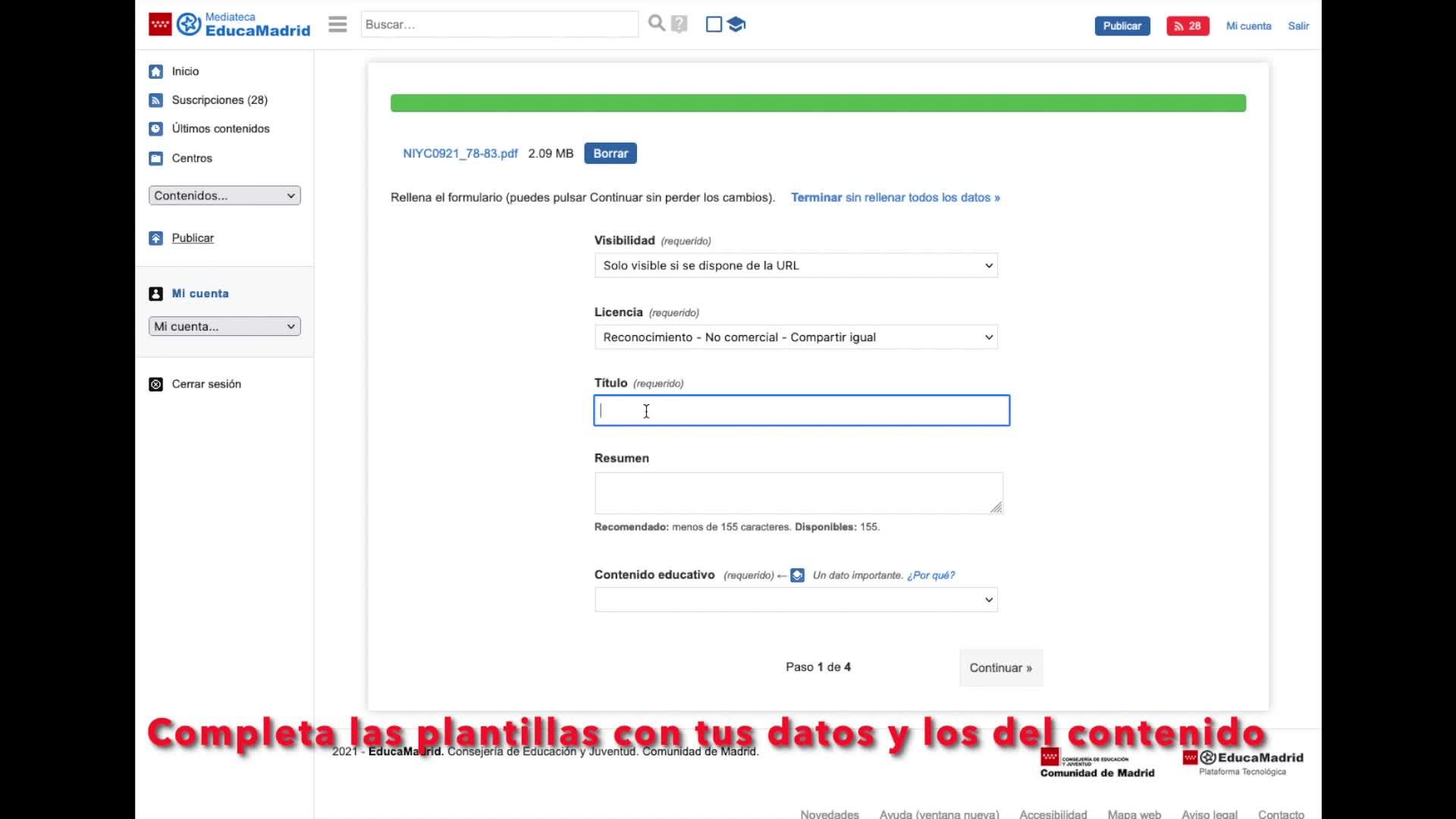 ¿Como insertar un pdf en un contenido de Educamadrid? Opción 1: Desde la Mediateca - Contenido educativo