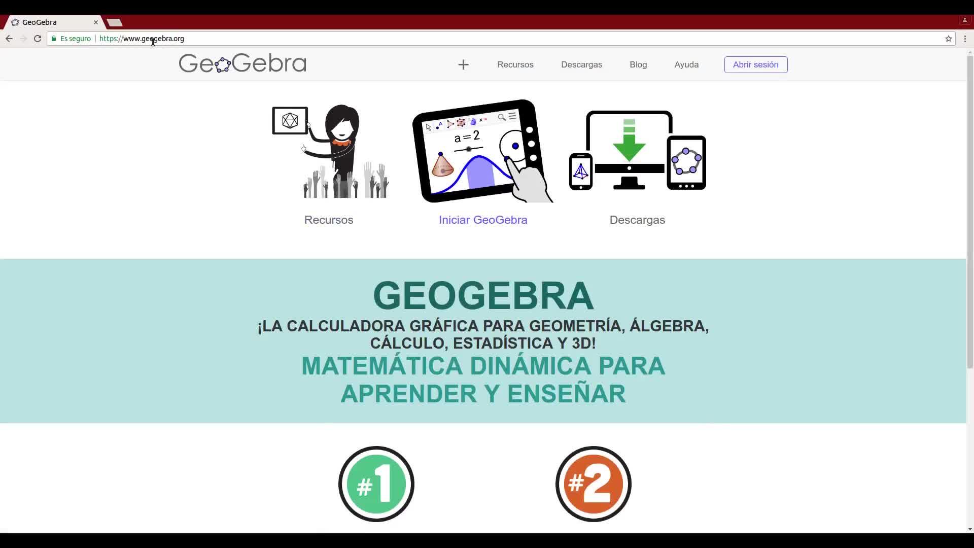 Vamos a la página web de GeoGebra, lanzamos nuestra aplicación, elegimos la vista geometría
