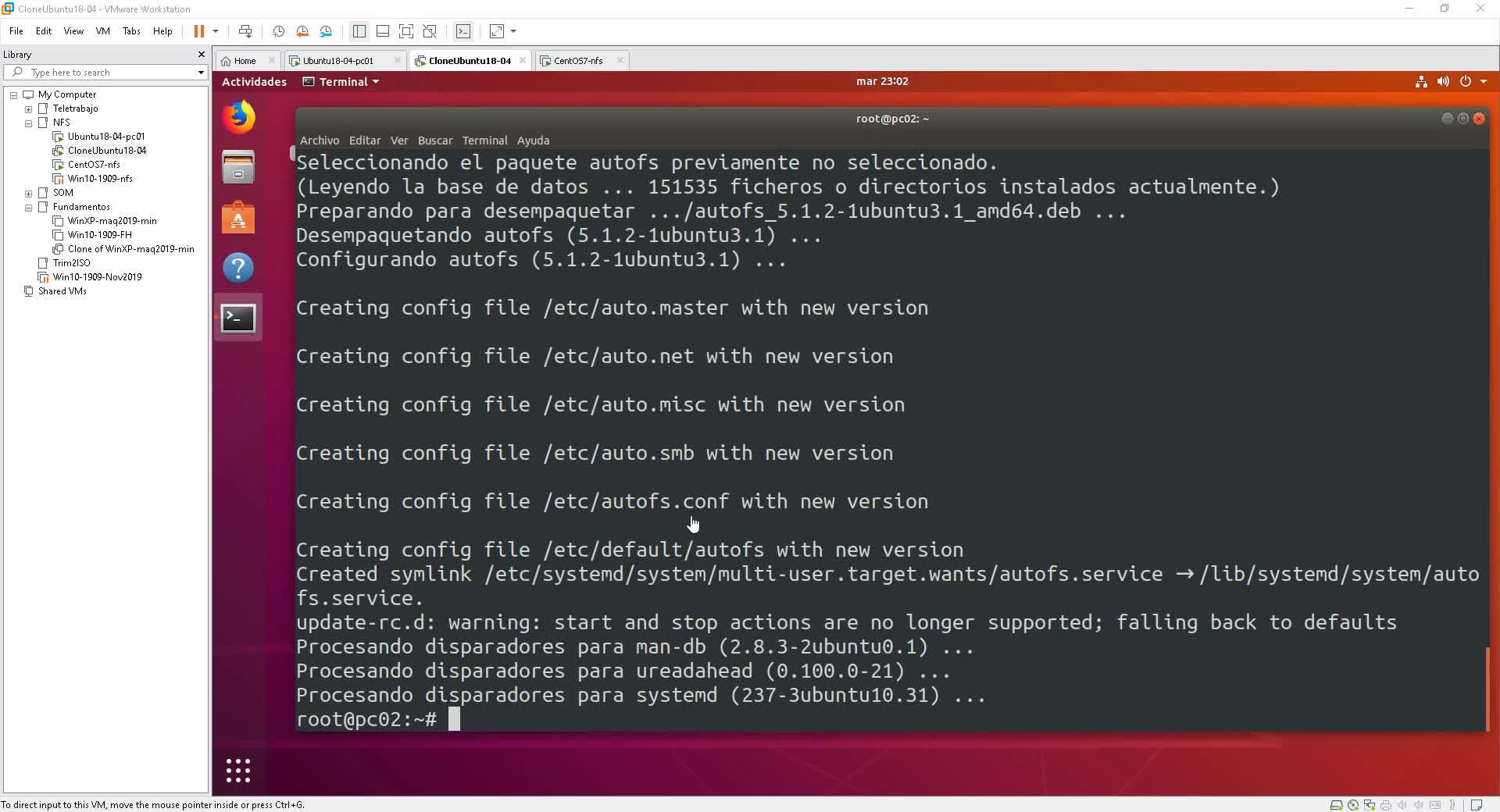 Seguimos viendo lo que empezamos a ver en el vídeo anterior, lo del montaje dinámico y os recuerdo que estábamos en el PC-02 y aquí en el PC-02 habíamos instalado para que podamos hacer el montaje automático del AutoFS.