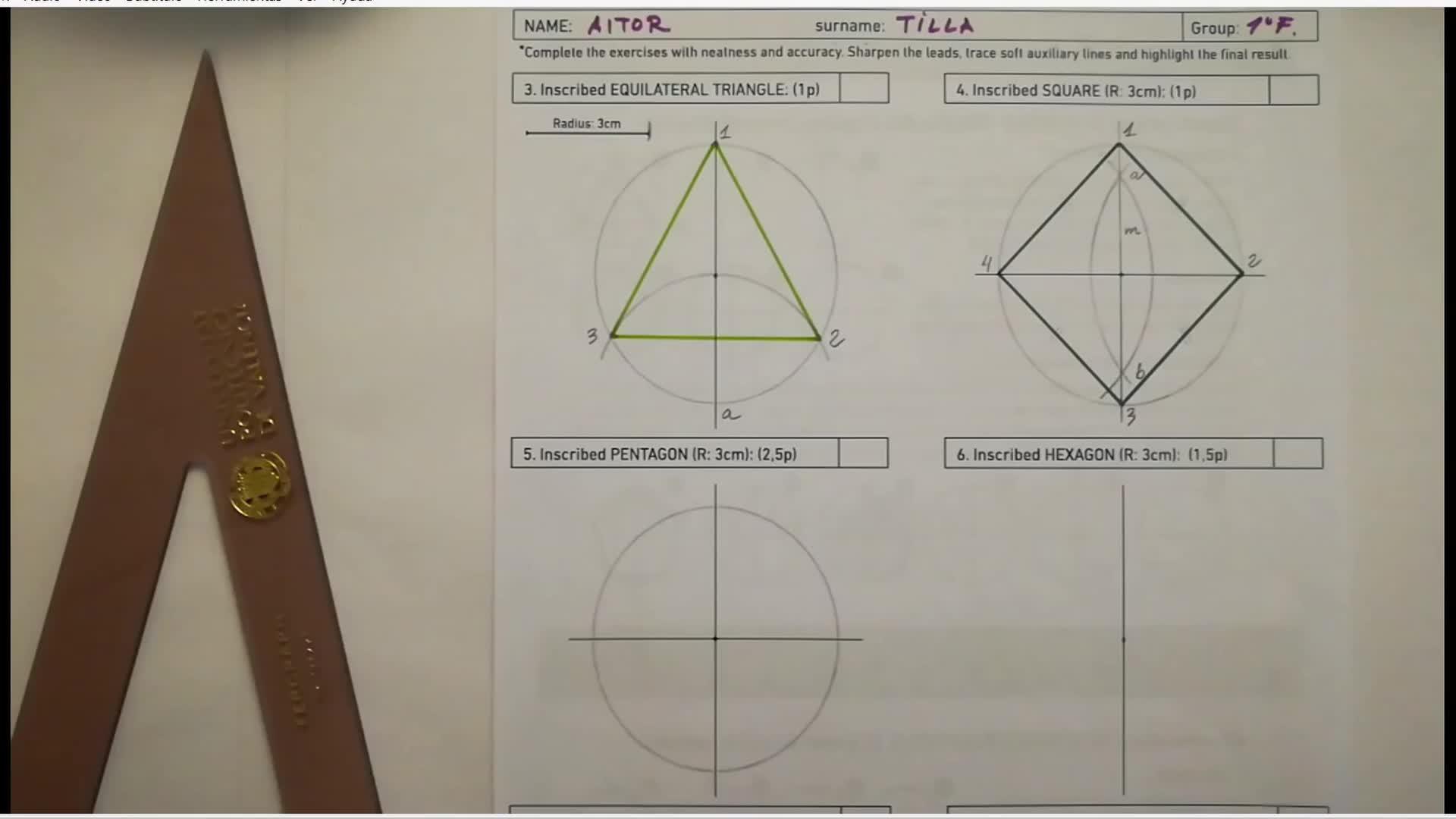 Disponemos de una plantilla para realizar el ejercicio y en esta parte vamos a dibujar el pentágono inscrito.
