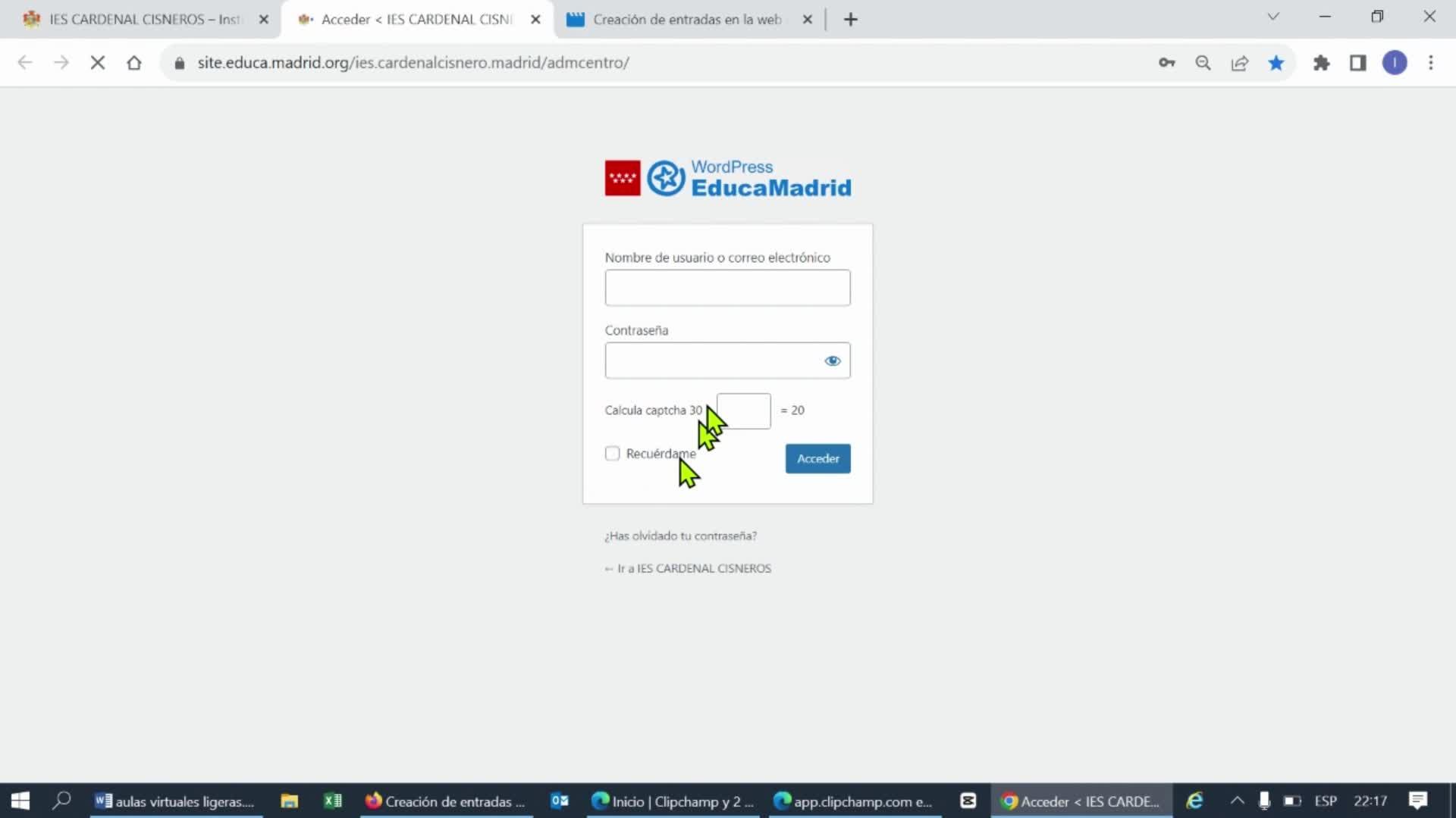 Nos loggearemos con nuestro usuario y contraseña de EducaMadrid.