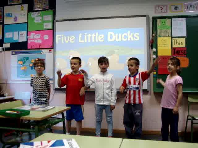 Five little ducks go swimming one day, over the hill, some far away.