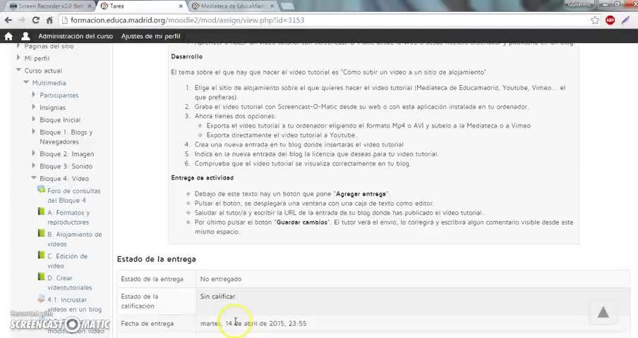 Bueno, la tarea 4.3 consiste en grabar un pequeño videotutorial sobre cómo subir algún vídeo a alguno de los hosts que hay en la red.